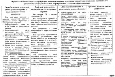 В целях сокращения времени и повышении качества предоставления государственной услуги по выдаче справок о наличии (отсутствии) судимости и (или) факта уголовного преследования либо о прекращении уголовного преследования Информационным центром ГУ МВД России по Свердловской области подготовлены информационные буклеты о возможности подачи заявления в электронной форме.